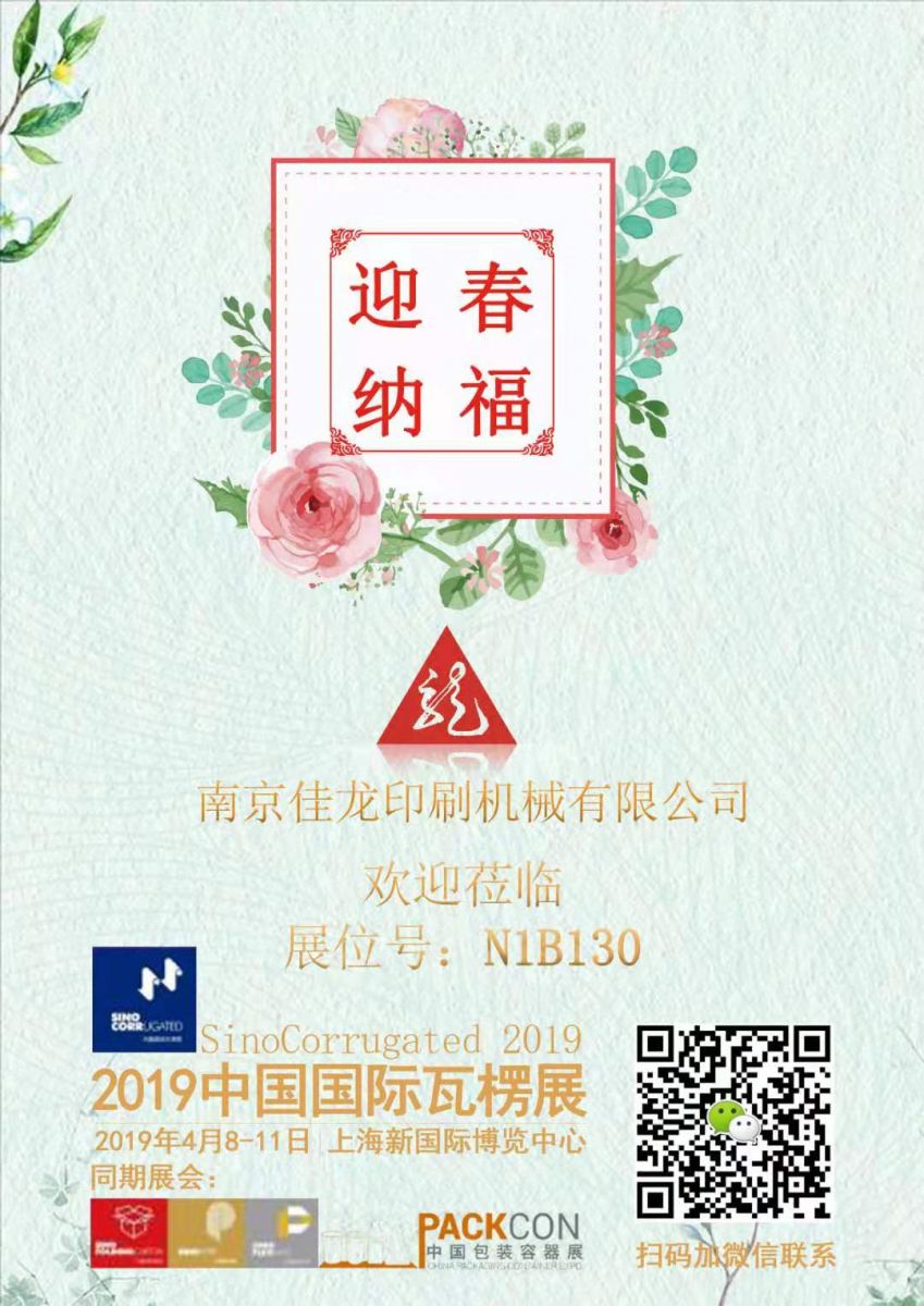 2019中國國際瓦楞展!南京佳龍印刷機(jī)械有限公司攜最新全自動翻轉(zhuǎn)機(jī)參展,展位號N1B130。歡迎各位新老顧客蒞臨指導(dǎo)!